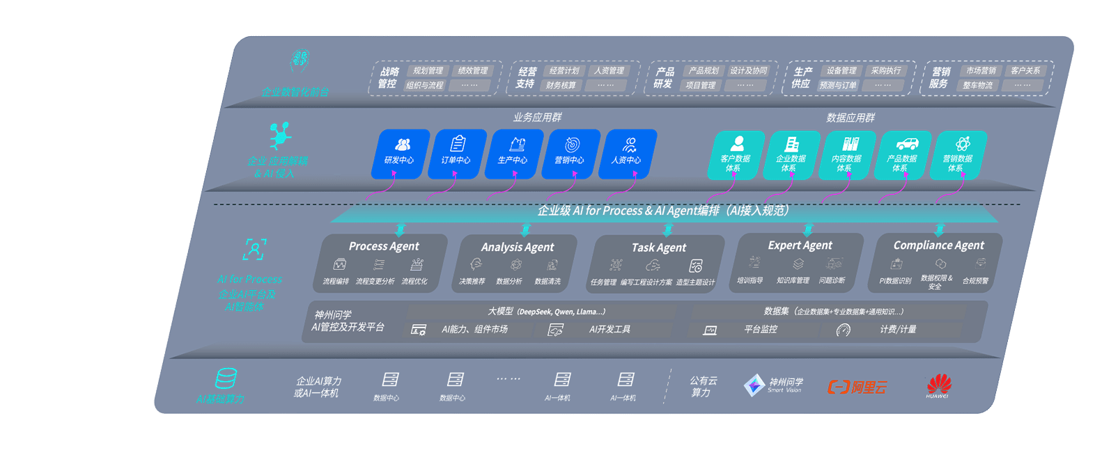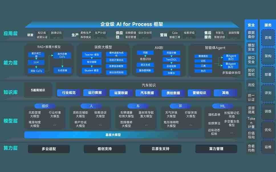 端到端的一站式AI工作空间深度融合了从企业战略规划到日常经营的全流程业务板块,,定向解决车企内部领域多、、部门多、、、、链条长、、、、场景碎片化等难题,,,,支持车企快速构建以AI为核心的生产力写作体系,,实现任务执行与AI能力的无缝集成与交互