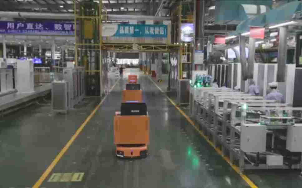 为车载冰箱物流配送打造的智能解决方案,,,,包含产中物流通过潜伏举升AMR搬运至线边,,,产后成品物流智能仓储,,,流程包含产中物流智能齐套入库,,,线边安灯叫料AMR智能配送至线边,,,成品入库、、、出库,,,,通过无人堆高车机器人,,,,智能仓储管理替代人工作业管理,,实现更高存储、、更高效率、、、更具柔性化的解决方案。。。。